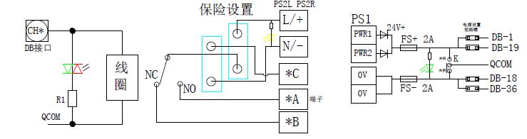 接線圖: 雙有源用于電動(dòng)執(zhí)行器等設(shè)備。 常用設(shè)置: 回路設(shè)置:改變保險(xiǎn)位置可切換輸出方式 (接線板上預(yù)留保險(xiǎn)插孔,保險(xiǎn)可改變位置) 輸入共陰共陽設(shè)置:開關(guān)K 電源設(shè)置: 每個(gè)DB 口都含有4 芯電源線,用于向PLC 模塊供電。這些電源由電源輸出設(shè)置的短路帽進(jìn)行控制,每個(gè)短路帽對(duì)應(yīng)一根線,詳見下圖,送電前應(yīng)根據(jù)需要進(jìn)行設(shè)置。電源指示在保險(xiǎn)下方,電源接反或保險(xiǎn)燒斷時(shí)電源燈不亮。 注意:為實(shí)現(xiàn)信號(hào)的徹底隔離,內(nèi)外電源必須做到隔離,因此本板需要外部電源,在端子板的左下角標(biāo)注為L+/N-的端子為外部電源端子,分為兩組,1-16 路為一組,17-32 路為一組。每組電源提供了兩組電源端子用于提高供電能力,須根據(jù)負(fù)載需要提供DC24V 或AC220V,干接點(diǎn)輸出時(shí)無需提供電源。